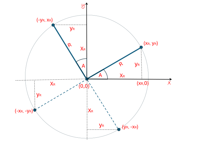 The total length of the distance vector is 1 unit, as required. Everything is consistent. Now we use the definition of the ‘Sin’ and ‘Cos’ and can see, from the diagram above, that: