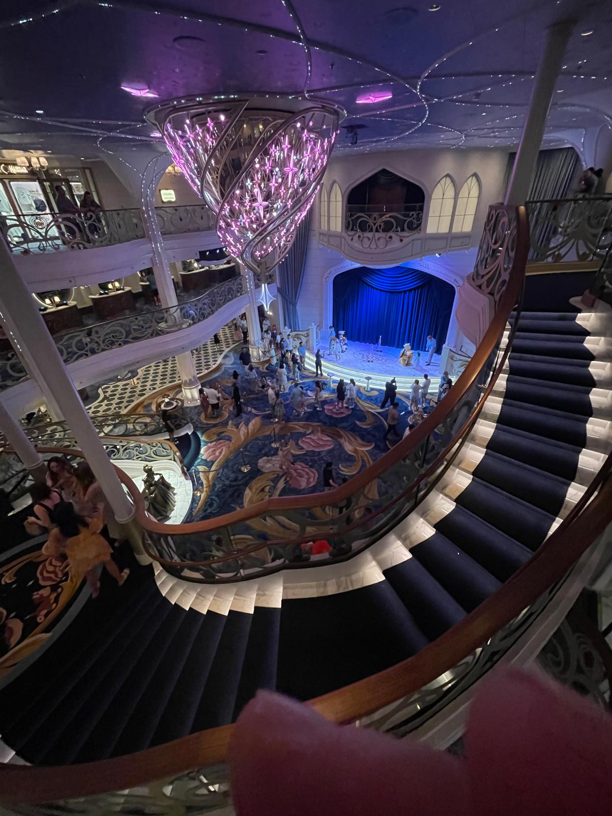 The announcement reverberated, “Welcome Samuelson Family”, and a Disney prince and princess waved at us from a balcony high above. Spiraling staircases, twinkling lights, the experience almost took my breath away, like I had returned to some huge childhood fantasy land. My grandchildren began running around, with many of the other children there.